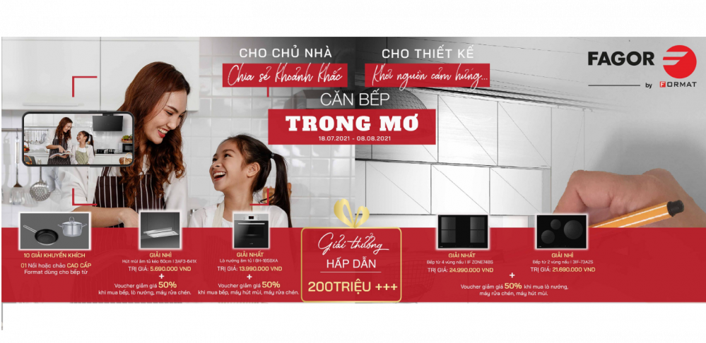 – 2nd prize: Fagor 3AF3-641X hood worth VND 5,690,000 and voucher for 50% off when buying stove, oven, dishwasher.